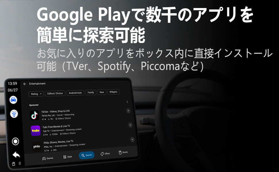 • 🚗 [車内ストリーミングとローカル再生に対応] インターネット接続の通話に向いて、いつでもどこでもエキサイティングな体験をお楽しみください!Netflix、YouTube、Disney+、Prime Videoなどの人気動画アプリをプリインストール。ドライブ体験がさらに充実します!microSDカード(最大128GB)経由でローカル動画を再生することもできるので、長距離ドライブや電波の弱い場所でも動画をお楽しみいただけます。